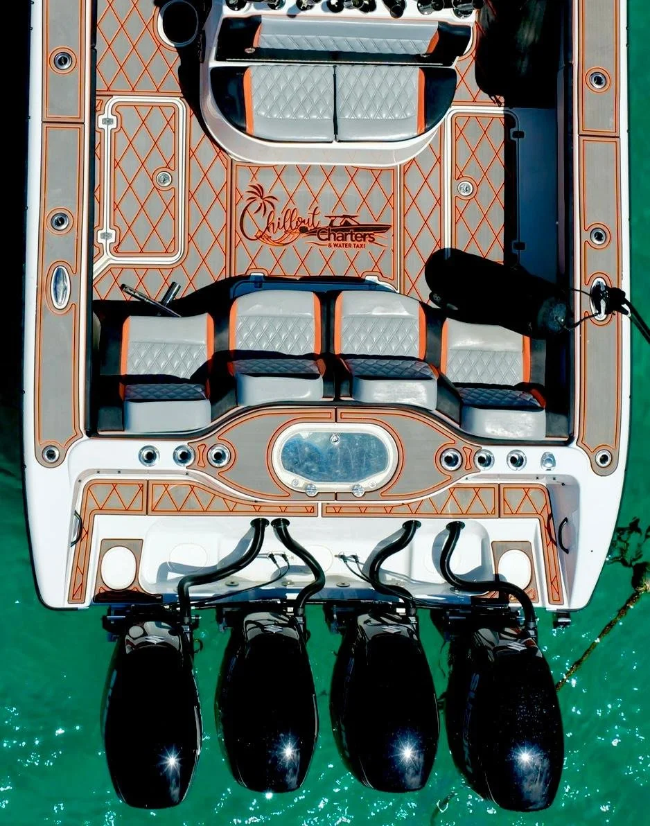 Uber Chill: This vessel stands out as one of the largest in our fleet. Despite sharing the same 39-foot length as our other boats, it creates the illusion of being the largest due to its remarkable width. To put it into perspective, you could almost fit our spacious "50 Shades" comfortably inside it! Uber Chill not only boasts open bow seating but also offers a pull out shade, for abundant protection from the sun. Its design is perfectly suited for accommodating large groups, ensuring a luxurious and comfortable experience even in any potentially choppy weather. Beach, Sleep, "Uber Chill", Repeat!