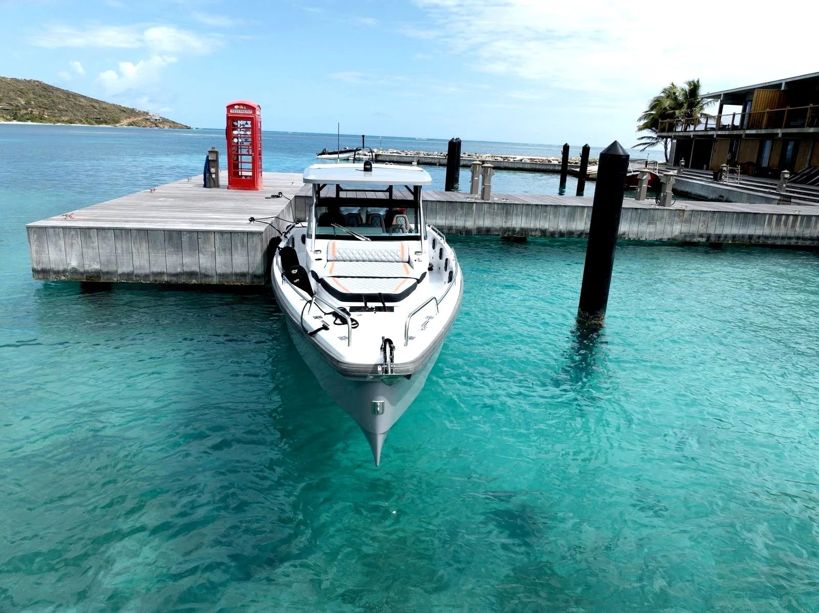 Endless Chill - is all about flow - sunlight, ocean breeze, and good vibes. Its signature feature? A retractable T-Top , like a convertible sunroof on a car - relax in the shade or slide it back and feel the sun on your shoulders as you cruise through paradise. Sleek lines and smart Scandinavian design make it as stylish as it is practical. Color-matched upholstery and accents that carry our Chillout Charters aesthetic/theme throughout the boat, it’s all in the details. With a plush forward sunbed, spacious seating, and room to move freely - plus, the swim platform is perfect for spontaneous dips in our BVI crystal-clear waters. Endless Chill – more than just a ride, it’s endless relaxation.